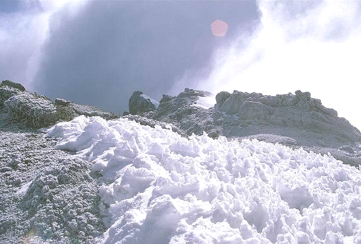 Summit zone: Permanent snow and glaciers surround the crater, the highest point on the continent.